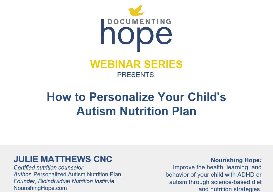 We interviewed author and nutritionist Julie Matthews about how to personalize your child’s autism nutrition plan. You can watch the replay below. Please note that you will be asked to provide your email address at the 30-minute mark to continue viewing the replay.