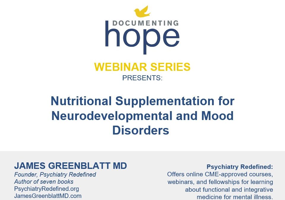 We interviewed James Greenblatt MD about nutritional supplementation for neurodevelopmental and mood disorders. You can watch the replay below. Please note that you will be asked to provide your email address after 30 minutes of viewing to continue watching the replay.